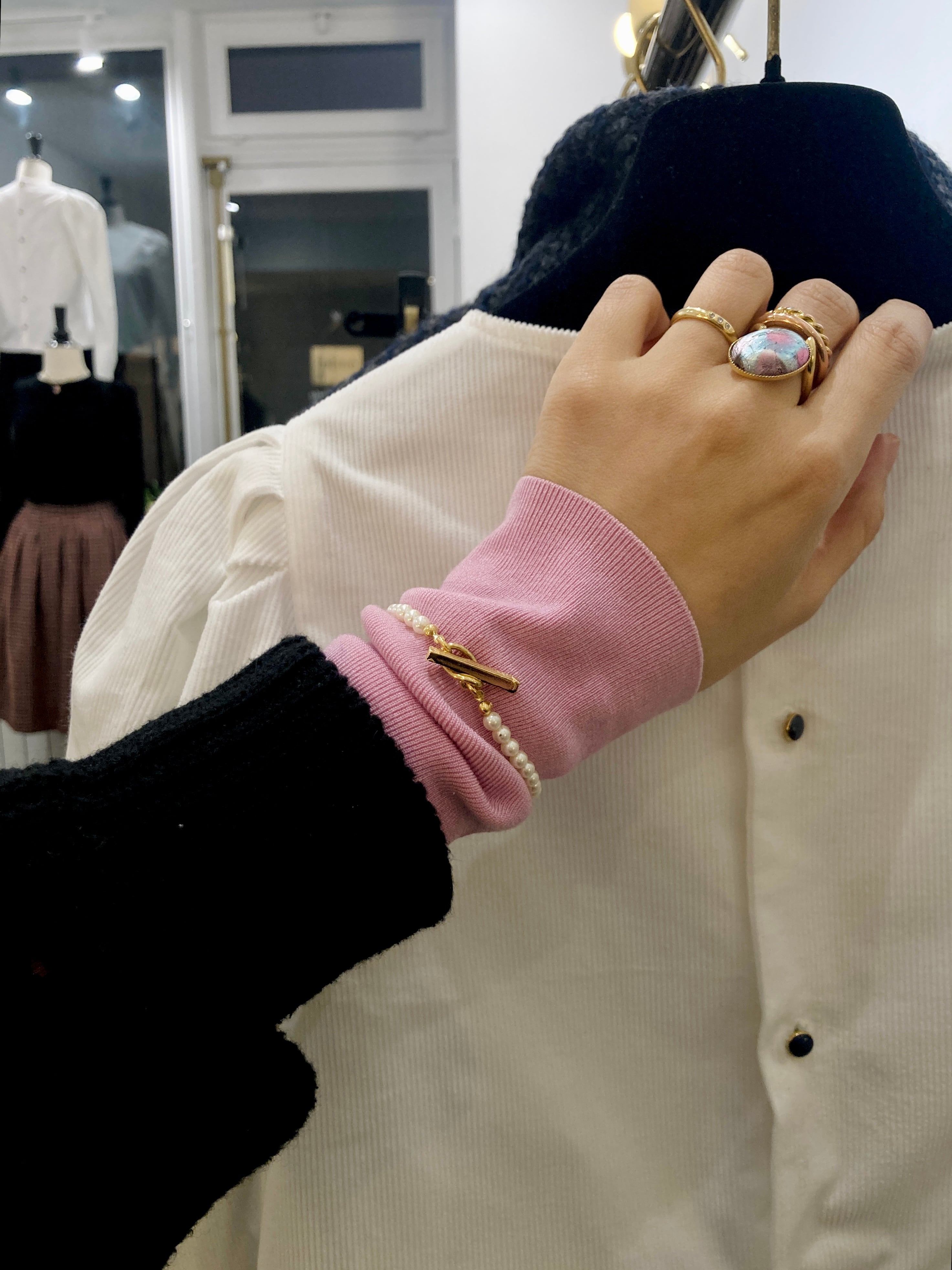 Yネックレスと同じパールなので合わせて使うのも素敵です✨