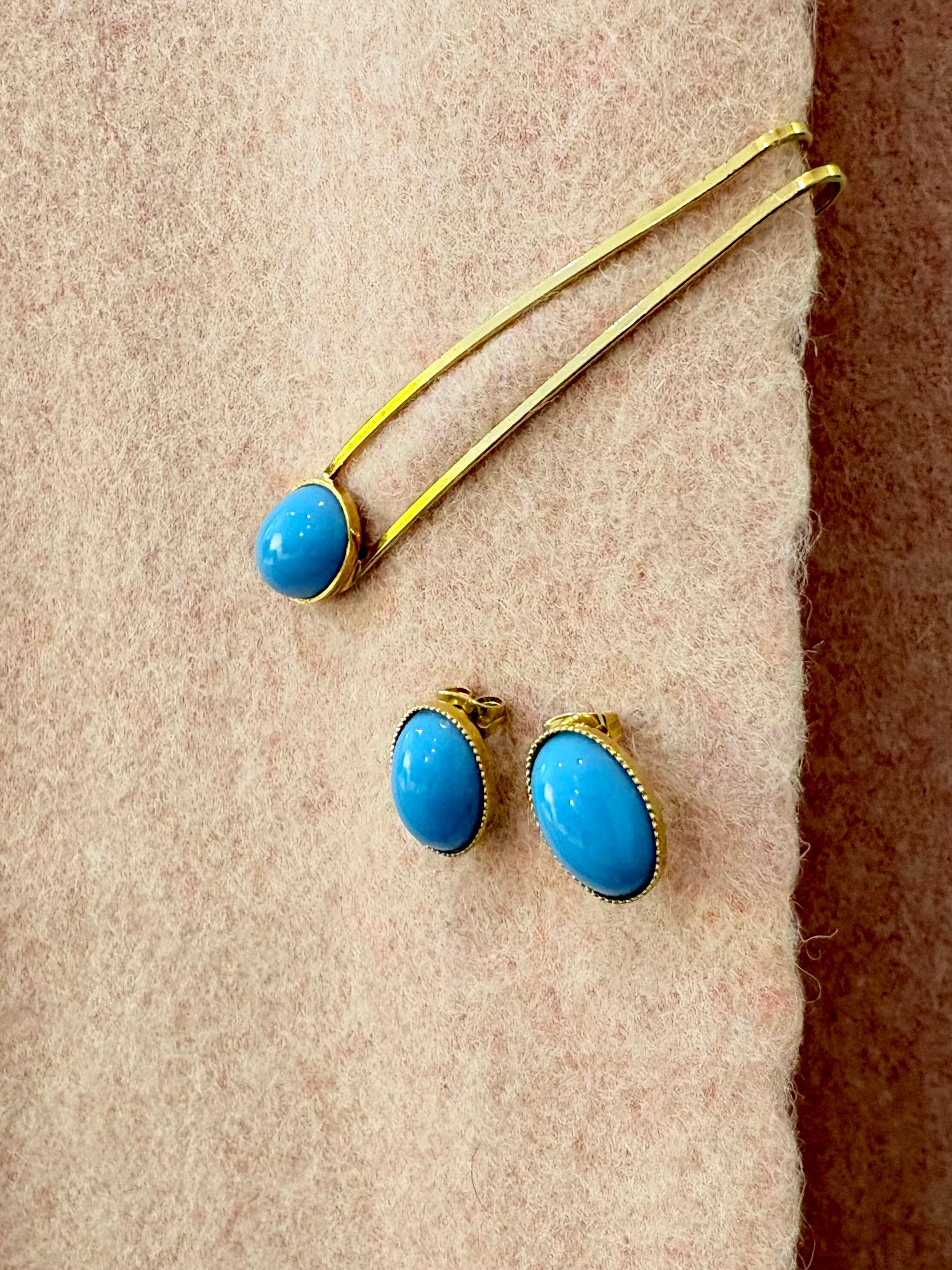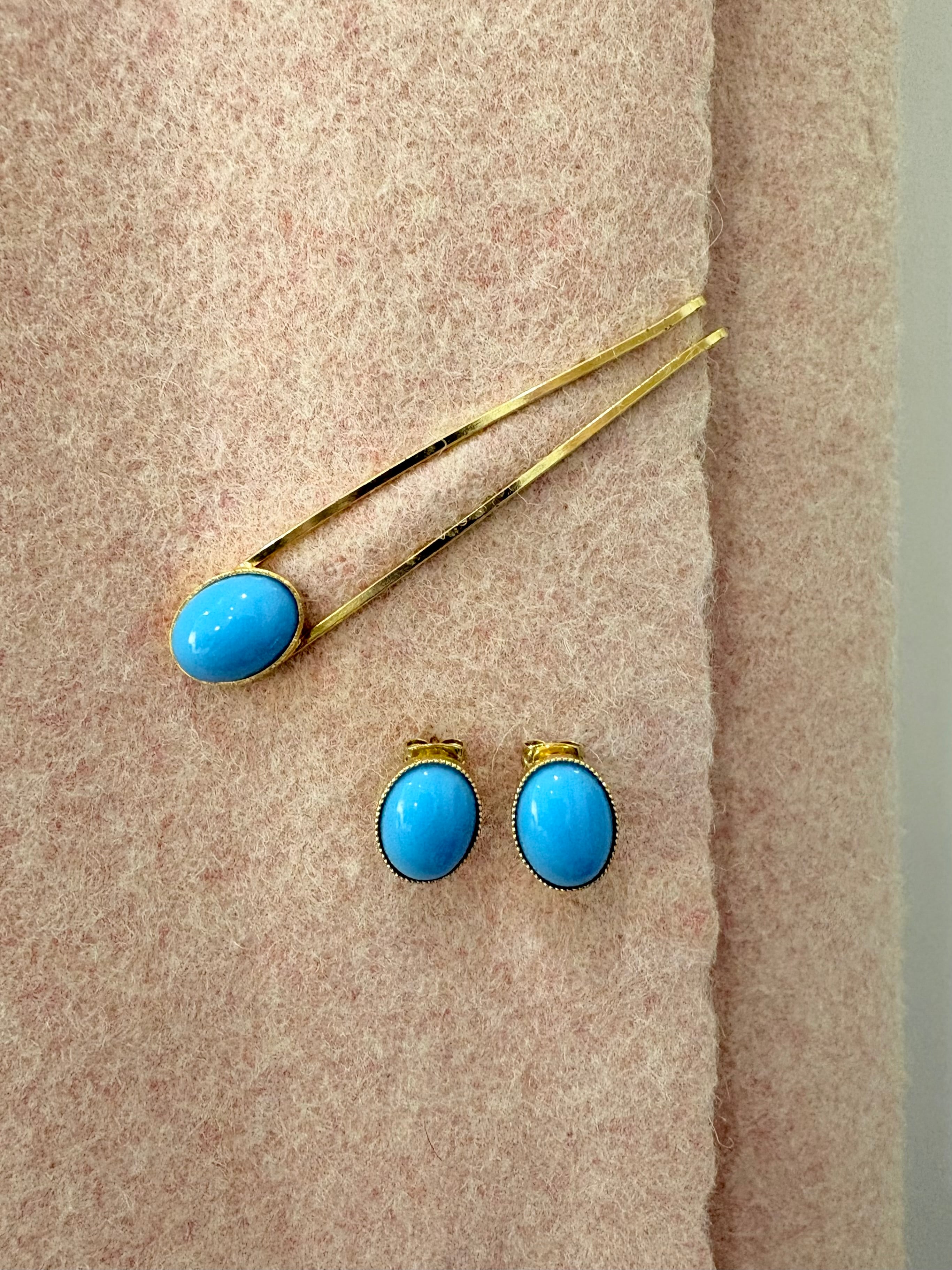 ターコイズブルーのシンプルな楕円ピアスとイヤリング
