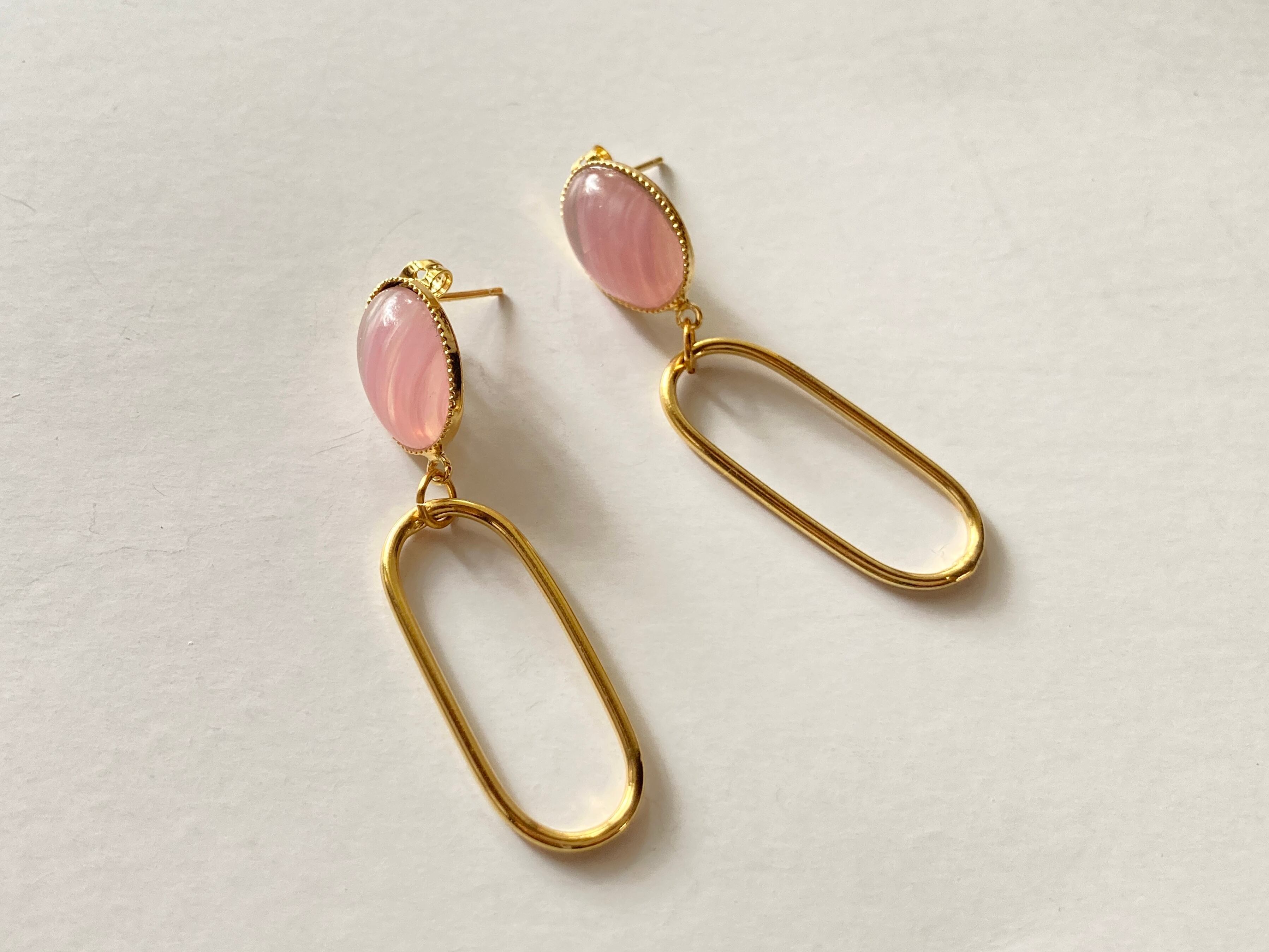Câline Paris ゼブラなヴィンテージピンク 模様があって上品なピンク ゆれるタイプ作りました✨ ※ヘアピンは含まれておりません 金属部分の素材は真鍮です 表面に24金の薄いメッキ加工をしておりますが、金属アレルギー対応はしておりません。